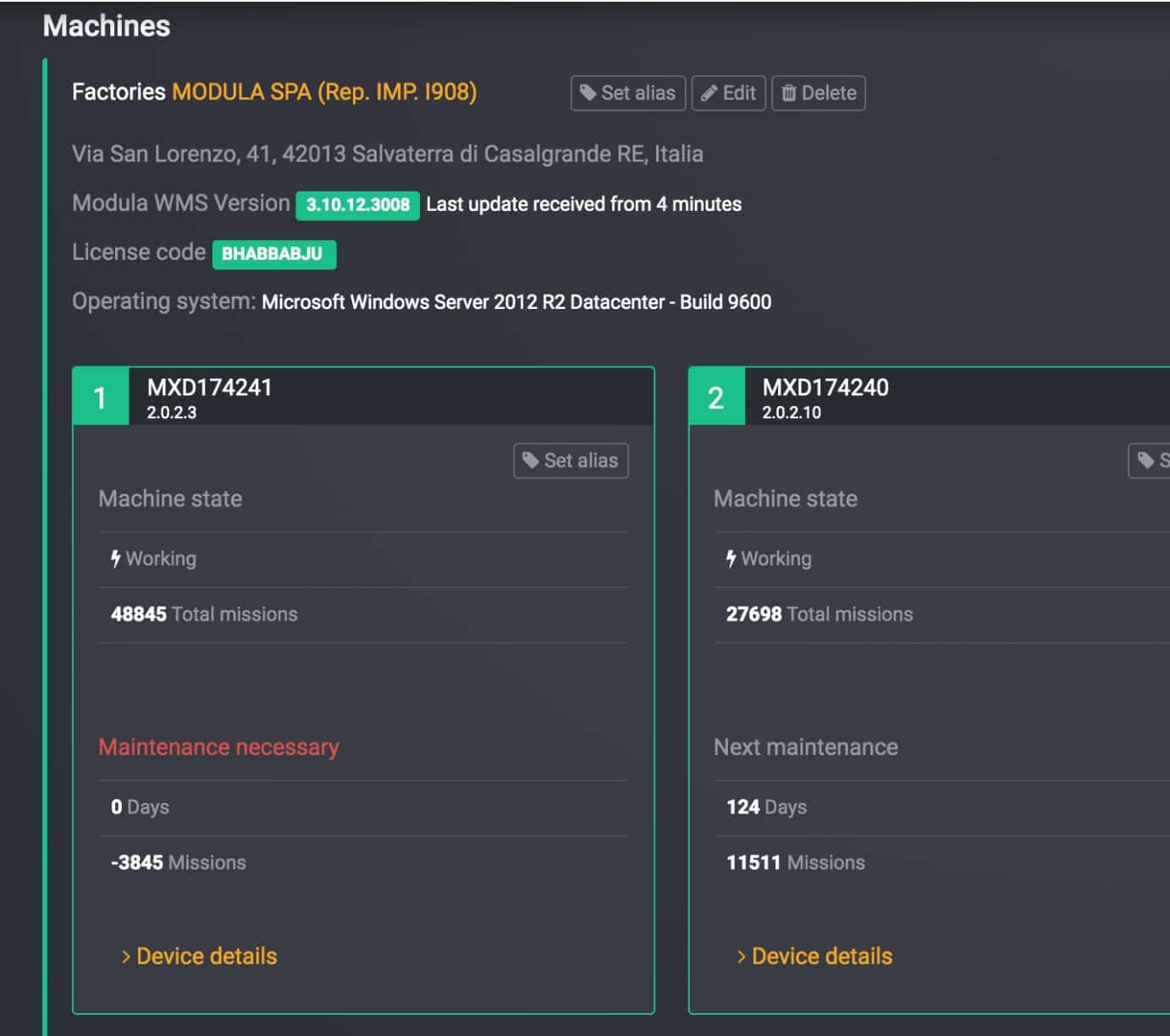 Modula Cloud collects and processes the information and activities coming from the warehouses (even on various systems in various cities and countries) so that the data of each individual VLM is available, including: